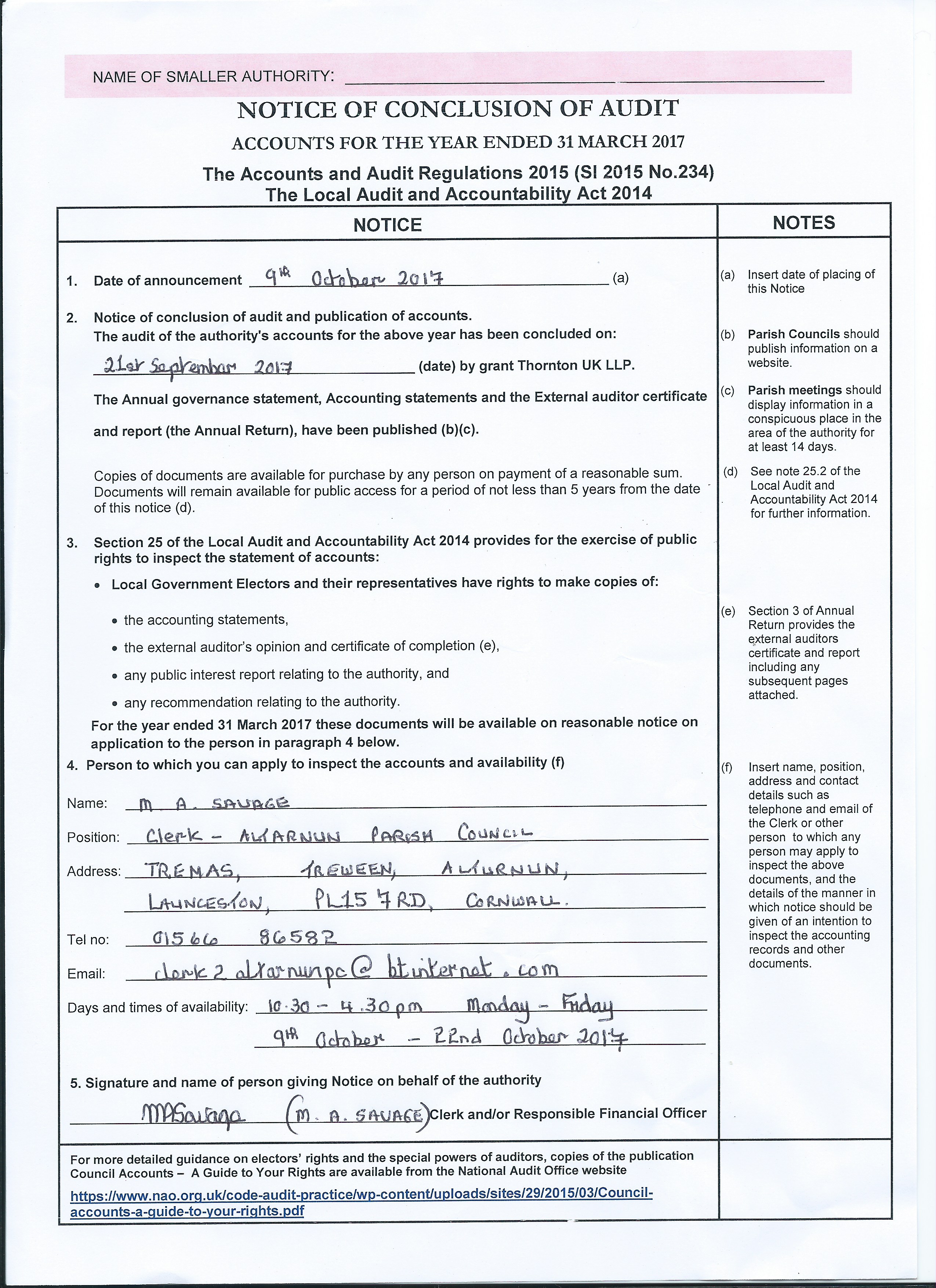 Notice of Public Rights & Publication of Unaudited Governance & Accountability Return y/e 31.3.2019June 201901/04/2018 - 31/03/2019